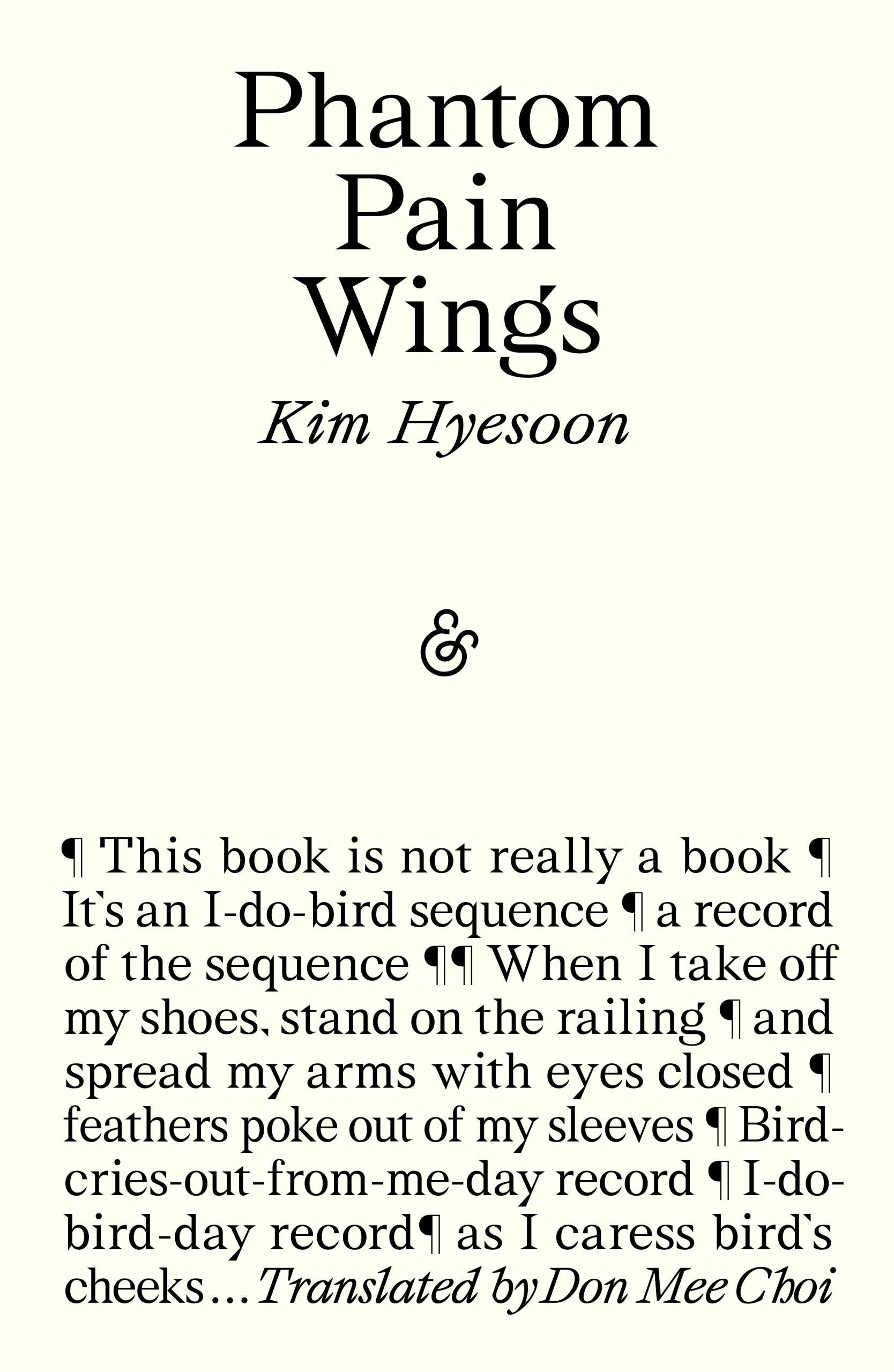 An iconic figure in the emergence of feminist poetry in South Korea and now internationally renowned, Kim Hyesoon pushes the poetic envelope into the farthest reaches of the lyric universe. In her new collection, Kim depicts the memory of war trauma and the collective grief of parting through what she calls an “I-do-bird-sequence,” where “Bird-human is the ‘I.’” Her remarkable essay “Bird Rider” explains: “I came to write Phantom Pain Wings after Daddy passed away. I called out for birds endlessly. I wanted to become a translator of bird language. Bird language that flies to places I’ve never been.” What unfolds is an epic sequence of bird ventriloquy exploring the relentless physical and existential struggles against power and gendered violence in “the eternal void of grief” (Victoria Chang, The New York Times Magazine). Through intensely rhythmic lines marked by visual puns and words that crash together and then fly away as one, Kim mixes traditional folklore and mythology with contemporary psychodramatic realities as she taps into a cremation ceremony, the legacies of Rimbaud and Yi Sang, a film by Agnès Varda, Francis Bacon’s portrait of Pope Innocent X, cyclones, a princess trapped in a hospital, and more. A simultaneity of voices and identities rises and falls, existing and exiting on their delayed wings of pain.
