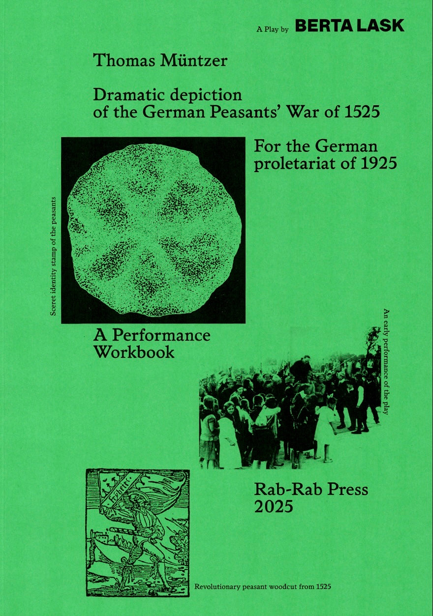 Translation of Berta Lask’s play Thomas Müntzer: German Peasants’ War (1925), with commentaries by Caroline Adler, Joseph Albernaz, Hunter Bivens, Shane Boyle, Rebeccca Comay, Sam Dolbear, Loren Goldman, Danny Hayward, Disha Karnad Jani, Sam Keogh, Henrike Kohpeiss, Esther Leslie,Huw Lemmey, Peter Linebaugh, Hussein Mitha, Vesa Oittinen, Hannah Proctor, Daniel Reeves, Ashkan Sepahvand, O. L. Silverman, Joey Simmons, Kerstin Stackermei, virgil b/g taylor, and Alberto Toscano.